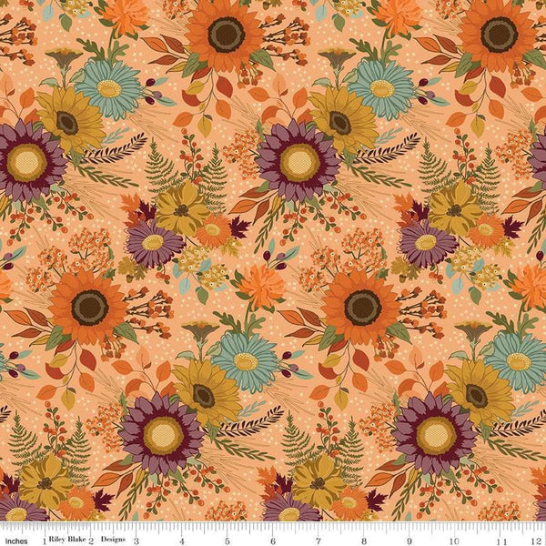 The Awe of Autumn Main C16190 Orange by Riley Blake Designs - Flowers Floral Blossoms Leaves Leaf - Quilting Cotton Fabric