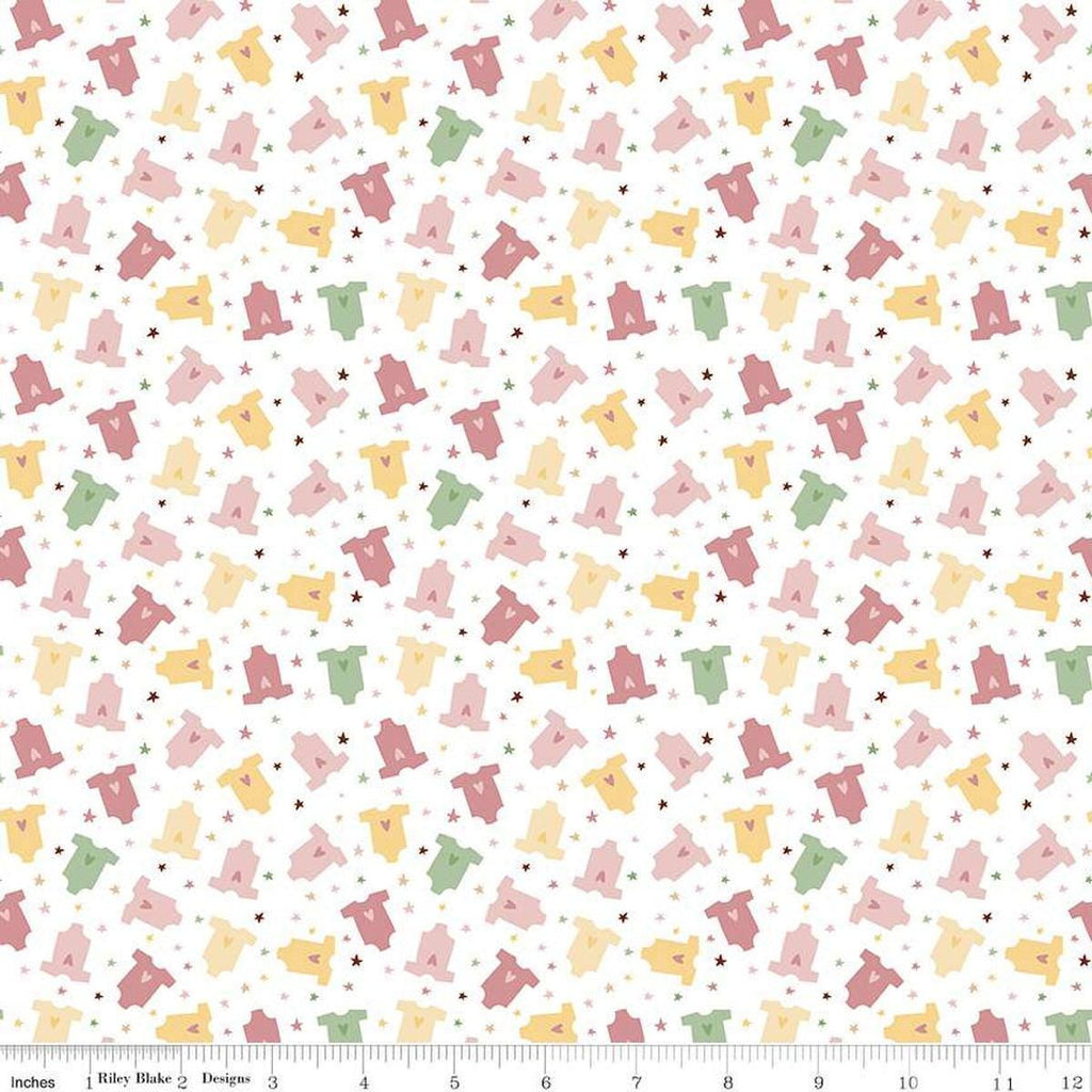 SALE Baby Girl Onesies C16774 White - Riley Blake Designs - Baby Clothes Outfits Random Scattered - Quilting Cotton Fabric