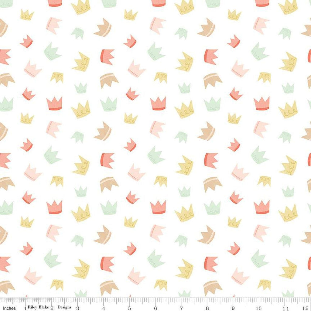 14" End of Bolt - SALE It's a Girl Crowns C13322 White - Riley Blake Designs - Children's - Quilting Cotton Fabric