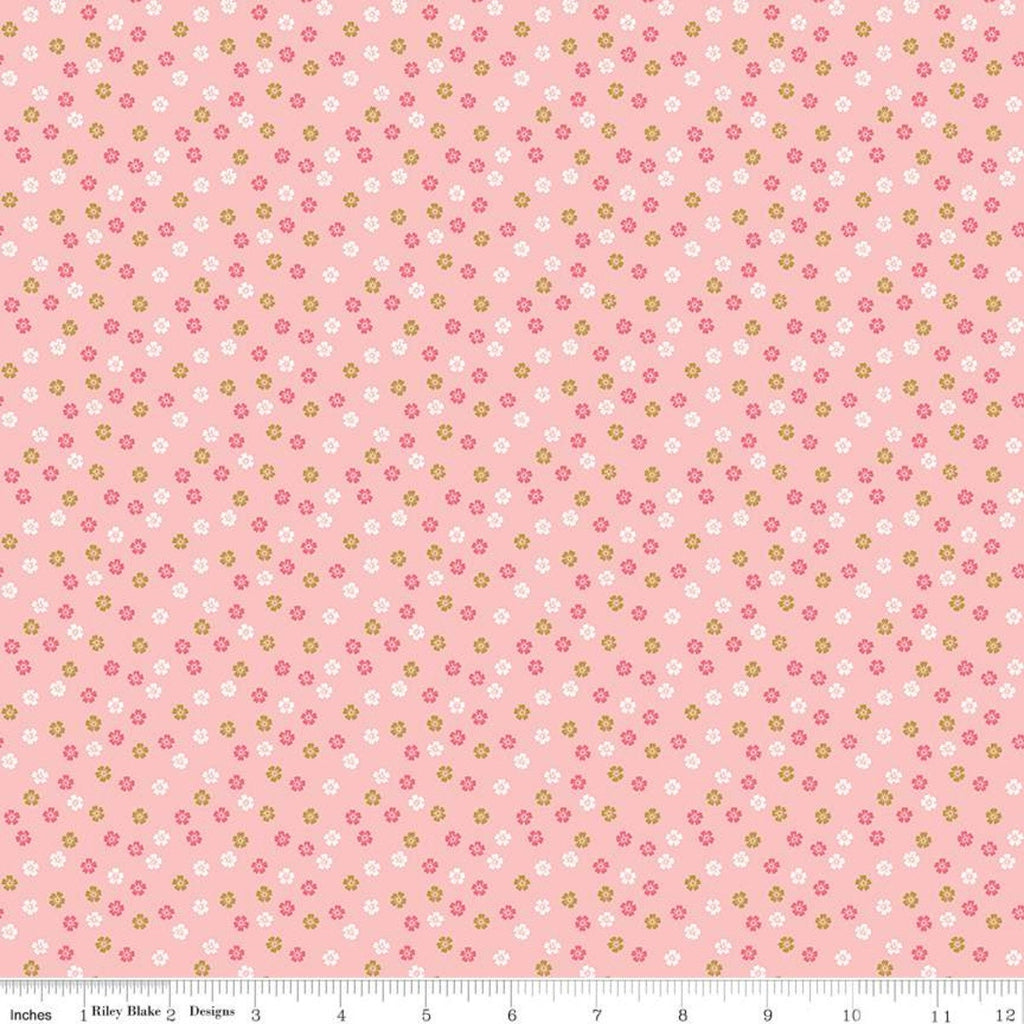 16" End of Bolt - SALE Ahoy! Mermaids Floral SC10346 Pink SPARKLE - Riley Blake - Small Flowers Gold SPARKLE - Quilting Cotton Fabric