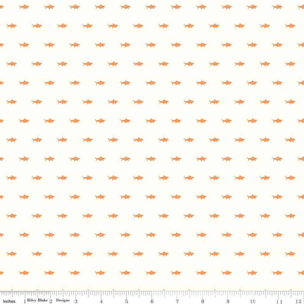 16" End of Bolt - SALE Riptide Shadows C10306 Orange - Riley Blake - Ocean Sea Sharks Shark Silhouettes Cream - Quilting Cotton Fabric