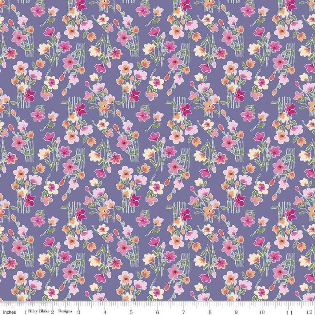 27" End of Bolt Piece - SALE Lucy June Stems C11224 Plum - Riley Blake Designs - Floral Flowers Purple - Quilting Cotton Fabric