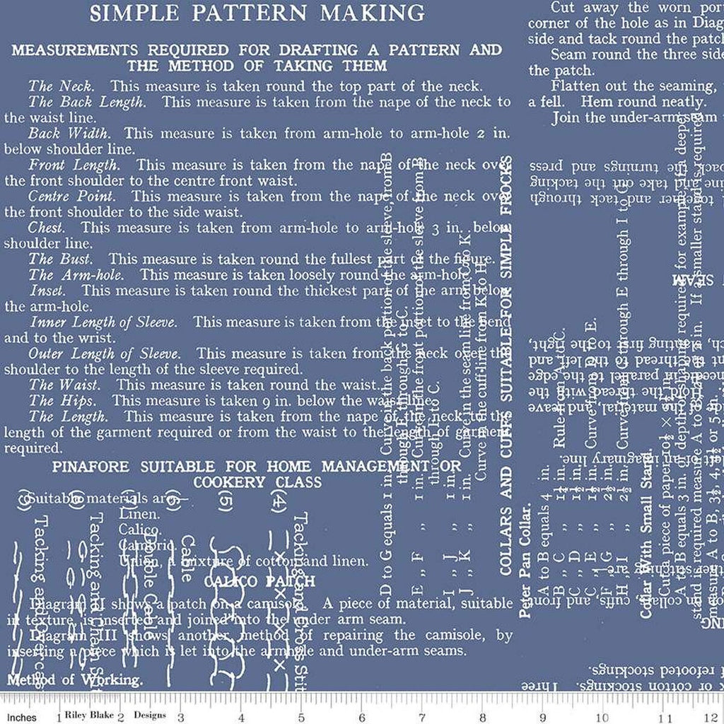 CLEARANCE 2yds 21" End of Bolt - Sew Text WIDE BACK WB13870 Denim - Riley Blake Designs - 107/108" Wide - Quilting Cotton Fabric