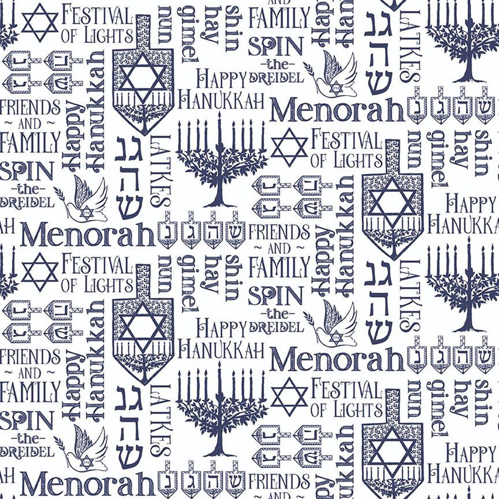 CLEARANCE Festival of Lights Symbols C9651 White - Riley Blake - Hanukkah Star of David Words - Quilting Cotton Fabric