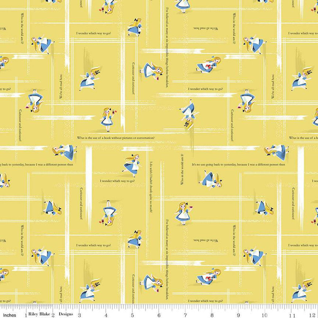 Fat Quarter End of Bolt - CLEARANCE Down the Rabbit Hole Alice Toss C12946 Yellow by Riley Blake Alice in Wonderland Quilting Cotton Fabric