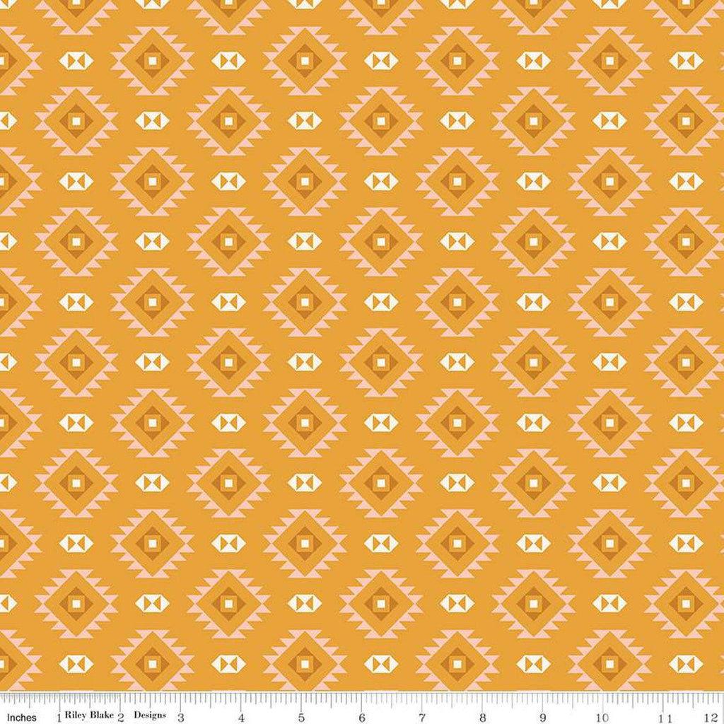Fat Quarter End of Bolt - SALE Santa Fe Motifs C13383 Mustard - Riley Blake - Geometric Southwest Southwestern - Quilting Cotton Fabric