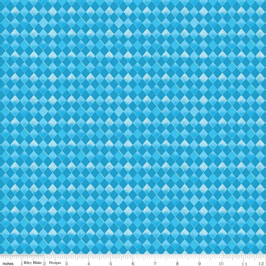 CLEARANCE Fat Quarter End of Bolt - The Little Engine That Could Argyle C9994 Blue - Riley Blake - Train Geometric Diamond - Quilting Cotton