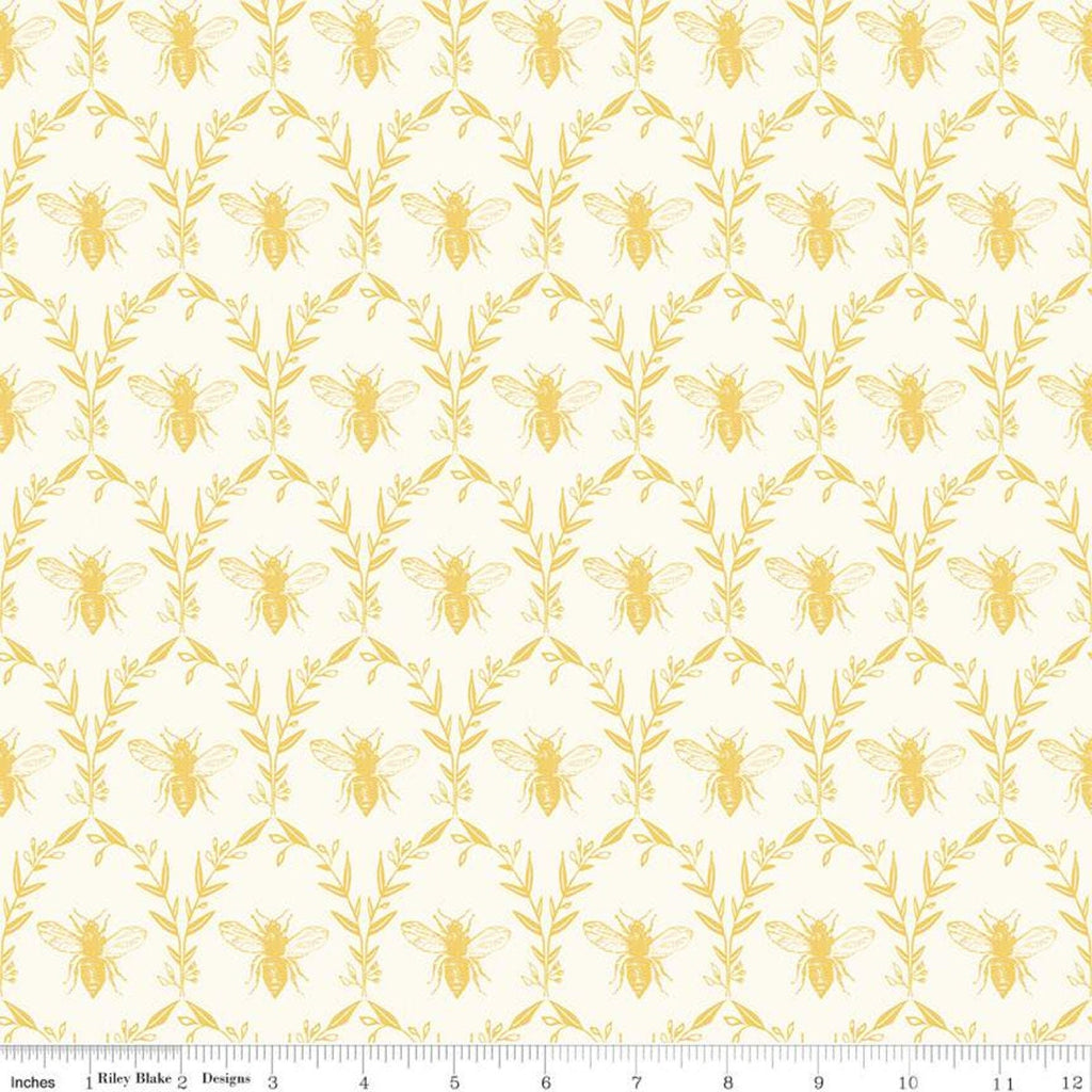 SALE Honey Bee Damask C11705 Parchment - Riley Blake Designs - Bees Leaves - Quilting Cotton Fabric