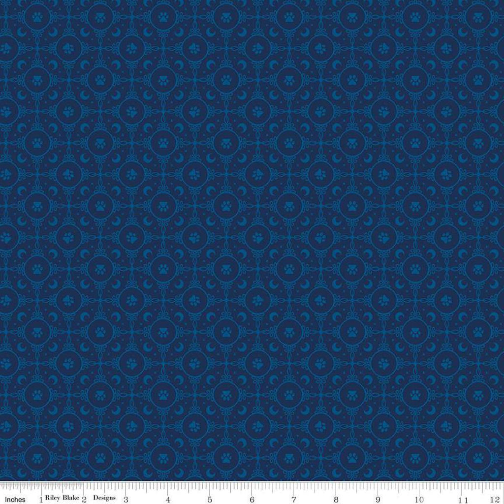 SALE Celtic Cats Circle Paws CD16585 Navy - Riley Blake Designs - DIGITALLY PRINTED - Moon Pawprint - Quilting Cotton Fabric