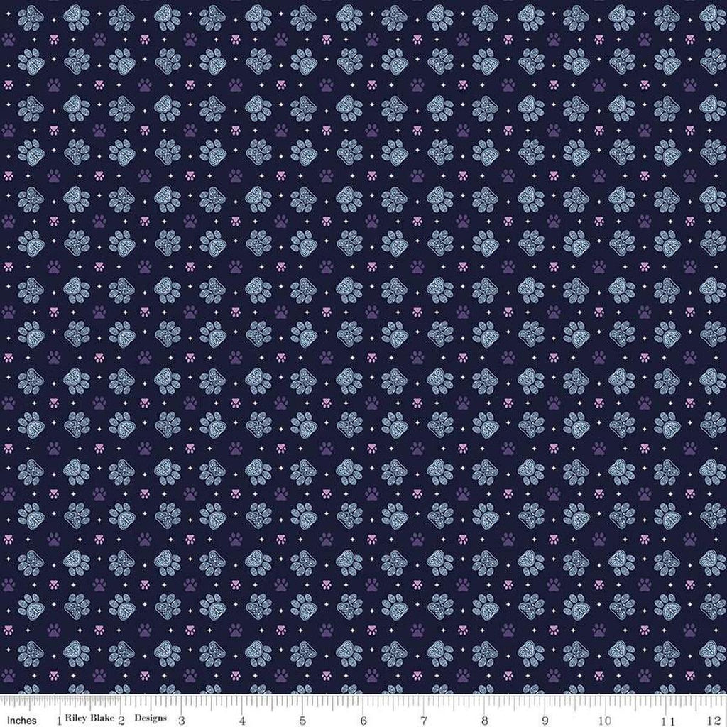 Celtic Cats Paws CD16586 Nighttime - Riley Blake Designs - DIGITALLY PRINTED - Pawprint Lines - Quilting Cotton Fabric