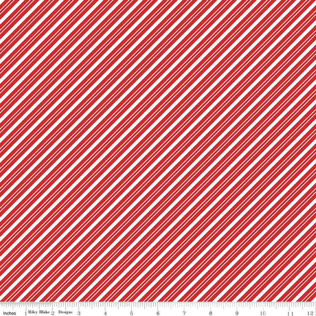 24" End of Bolt - The Magic of Christmas Stripes C13645 Red - Riley Blake Designs - Diagonal Stripes Red White - Quilting Cotton Fabric