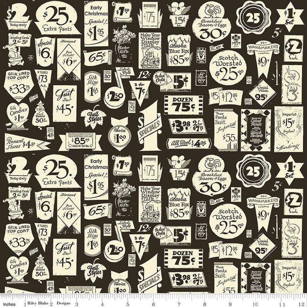 Classic Christmas Gift Tags C16287 Black by Riley Blake Designs - Vintage Tags Icons Signs - Quilting Cotton Fabric