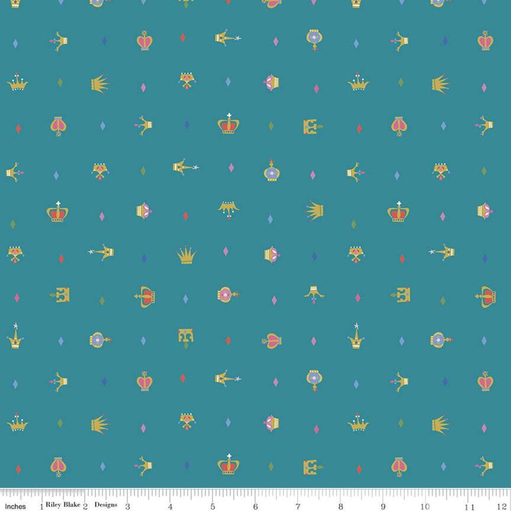 Little Brier Rose Crowns Teal SPARKLE by Riley Blake Designs SC11075-TEAL