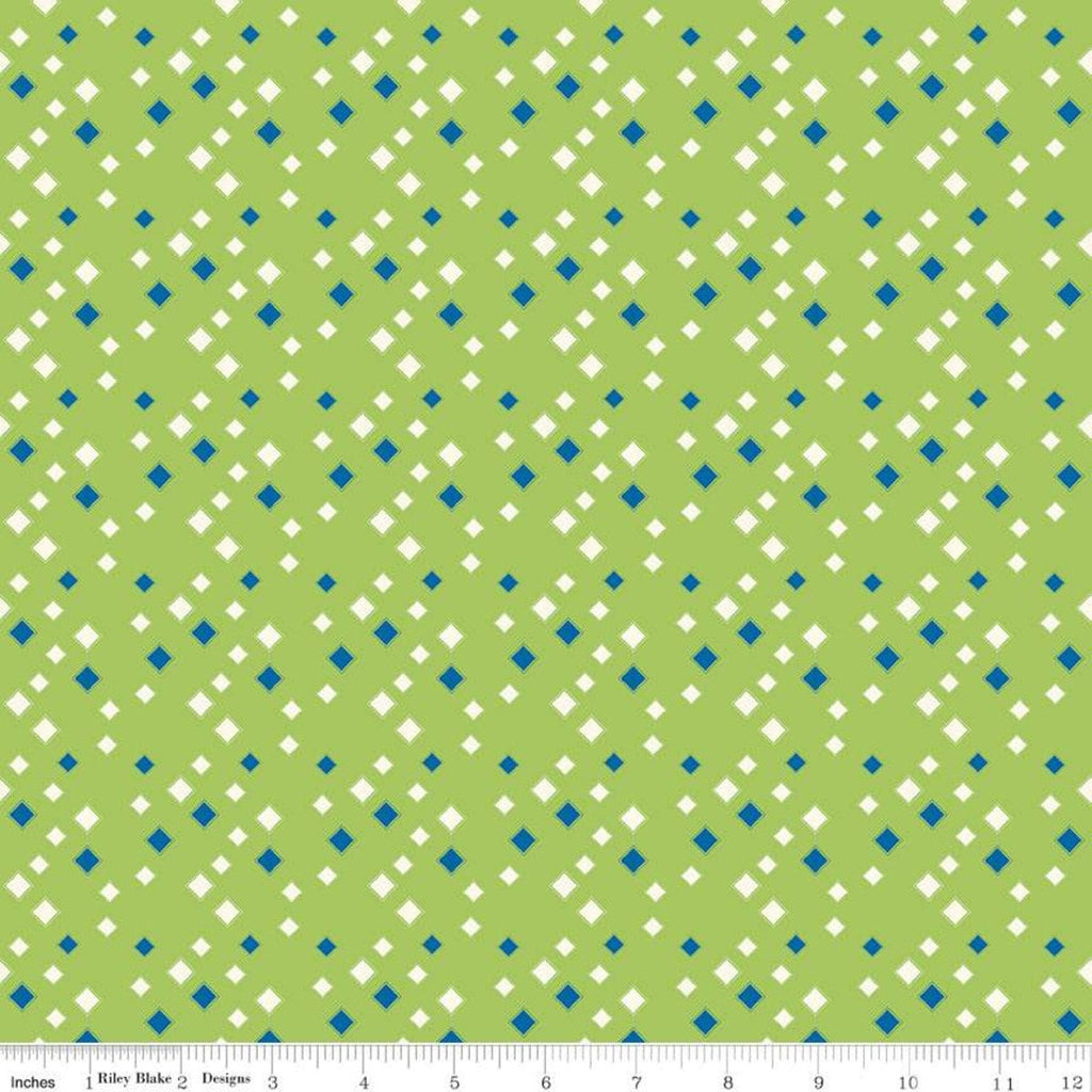 Fat Quarter End of Bolt - CLEARANCE Oh Happy Day! Diamonds C10314 Green - Riley Blake - Scattered Blue Cream - Quilting Cotton Fabric