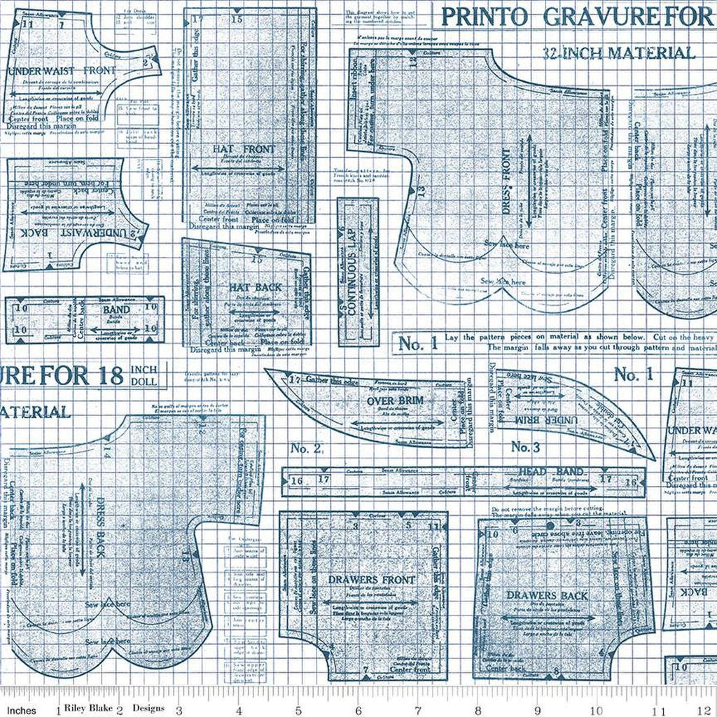 Fat Quarter End of Bolt - CLEARANCE Sew Journal 18-Inch Doll Pattern C13890 Denim - Riley Blake - Vintage - Quilting Cotton