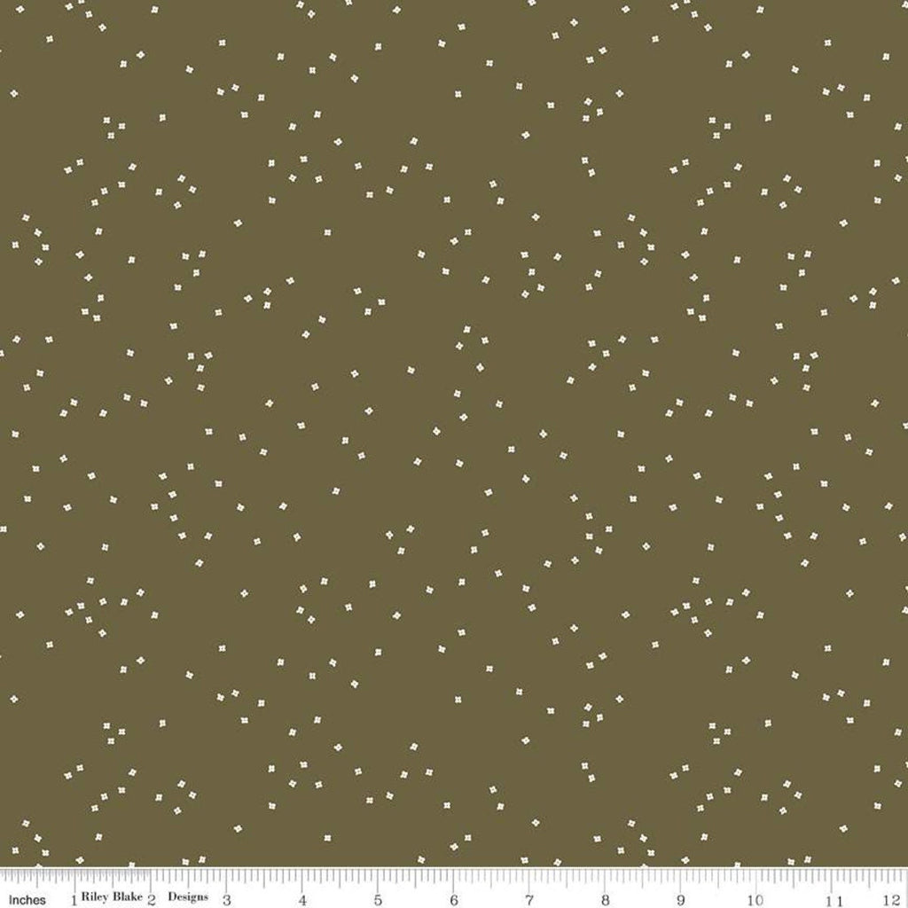 CLEARANCE Blossom C715 Swamp by Riley Blake - Floral Flowers White Confetti Blossoms - Quilting Cotton