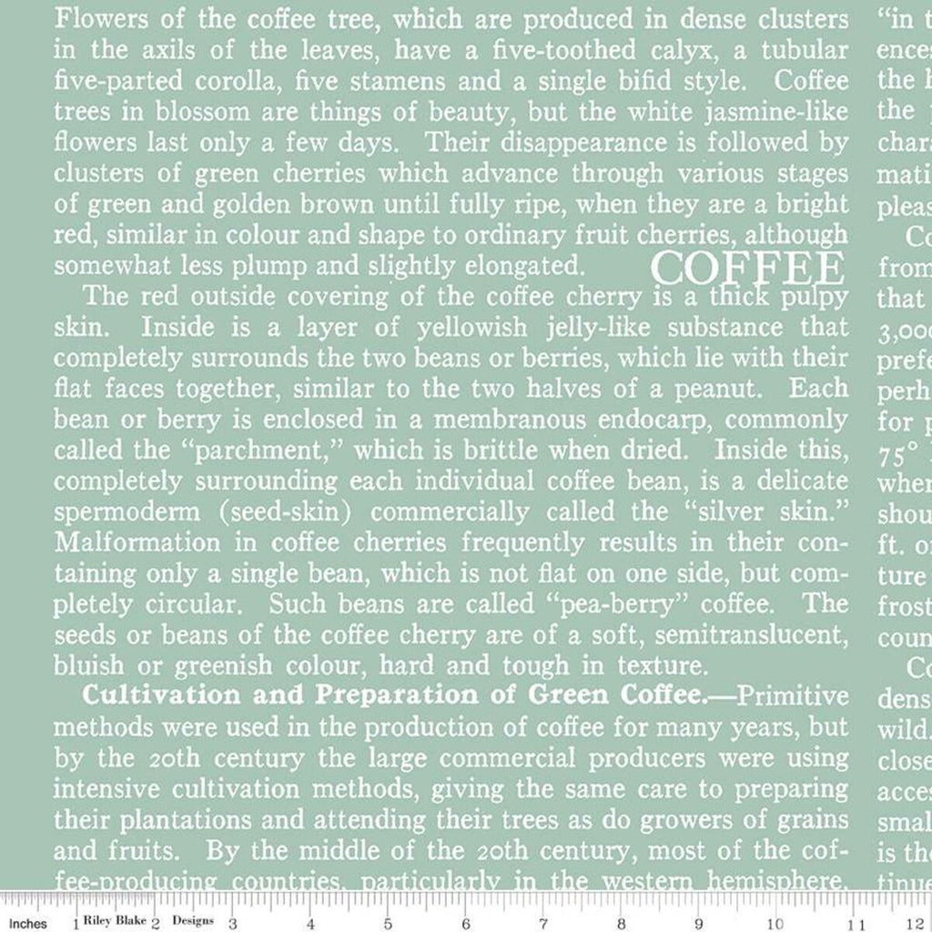 18" End of Bolt - CLEARANCE Coffee Chalk Text C11039 Aqua - Riley Blake Designs - Words Blue - Quilting Cotton Fabric