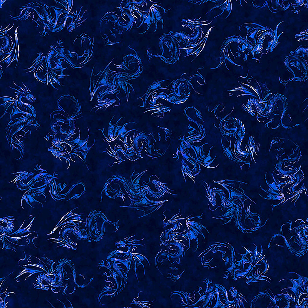 Dragon's Song Dragon Linocut Royal by QT Fabrics 2600 31154 Y