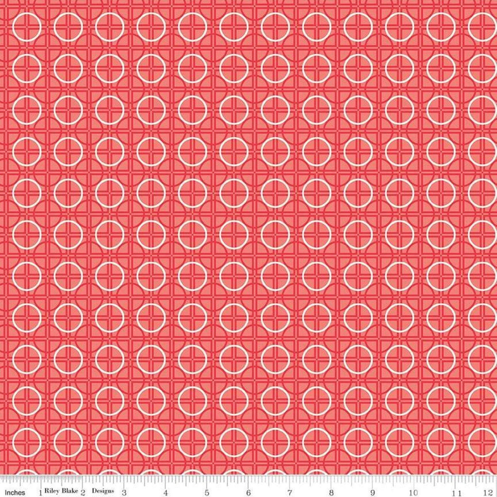 Fat Quarter End of Bolt - CLEARANCE Bee Basics Circle C6407 Red by Riley Blake Designs - Geometric - Lori Holt - Quilting Cotton Fabric