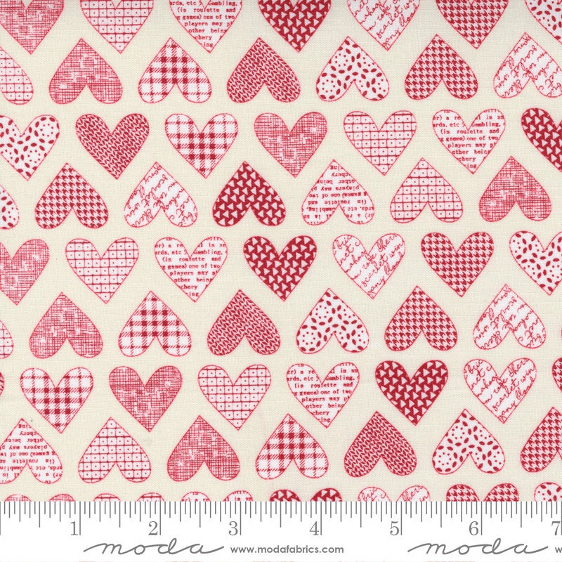Fat Quarter End of Bolt - SALE Flirt Hearts 55570 Cream Red - Moda Fabrics - Valentine's Day Valentines Heart - Quilting Cotton Fabric