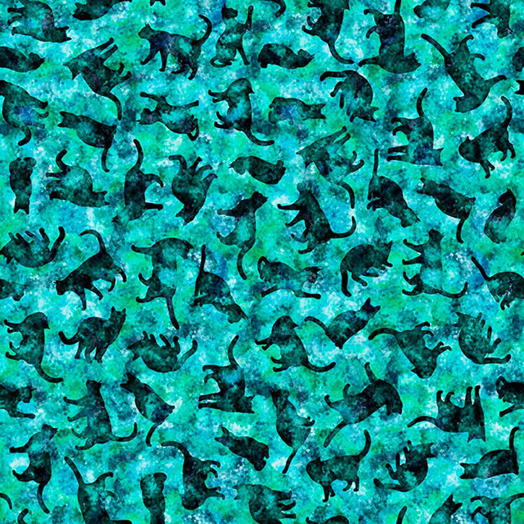 Feline Fantasia Cat Silhouettes Turquoise Q by QT Fabrics 2600 31371 Q