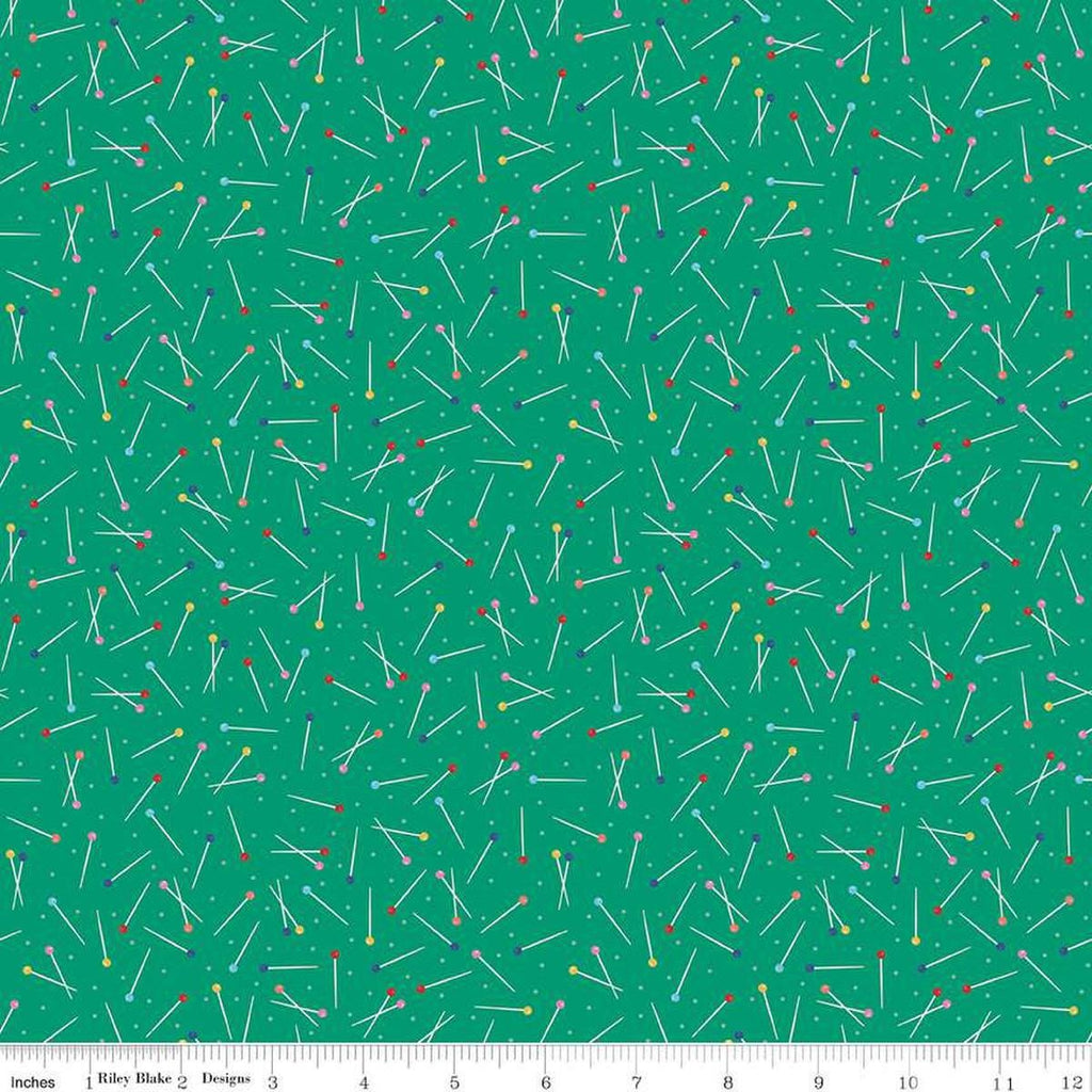 SALE Hand Made Pins C16594 Green by Riley Blake Designs - Needles Random Clustered - Quilting Cotton Fabric