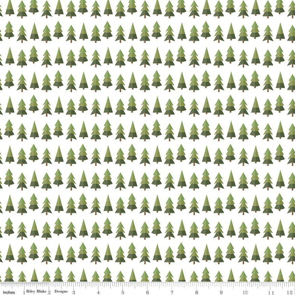 SALE Holly Holiday Trees C10883 White - Riley Blake Designs - Christmas Pines Pine Trees - Quilting Cotton Fabric