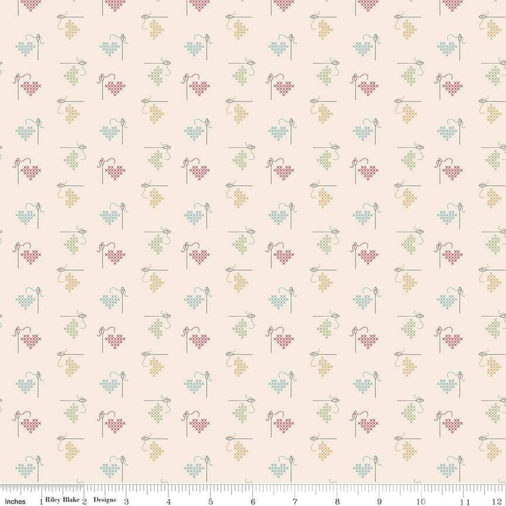SALE Hush Hush 5 Stitched with Love C16951 - Riley Blake Designs - Heart Stitching Needle Embroidery - Quilting Cotton Fabric