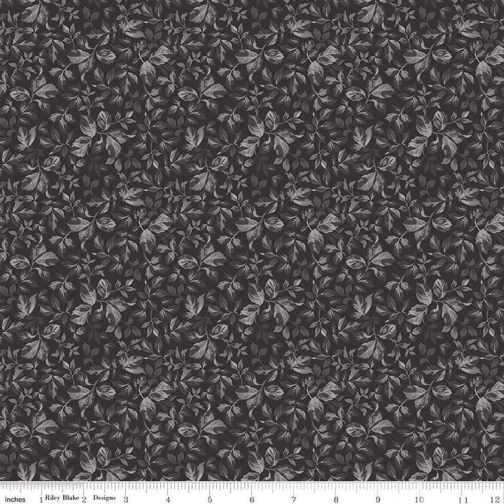 SALE Ink & Ivory Leaves C16913 Ink - Riley Blake Designs - Leaf Plant Stem Nature - Quilting Cotton Fabric