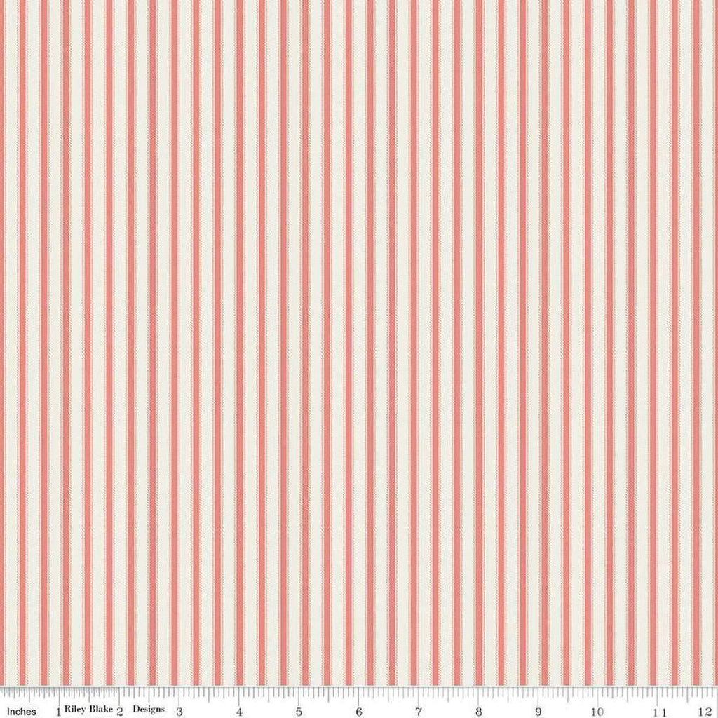Ivy Reese Ticking C16605 Coral - Riley Blake Designs - Stripes Lines Thin Even - Quilting Cotton Fabric