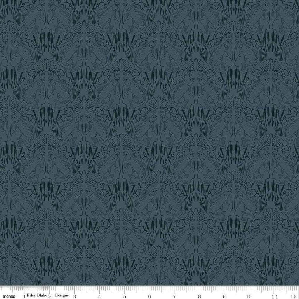 SALE Let's Wander First Catch C16882 Blue - Riley Blake Designs - Fish Reeds Lake Pond Nature - Quilting Cotton Fabric