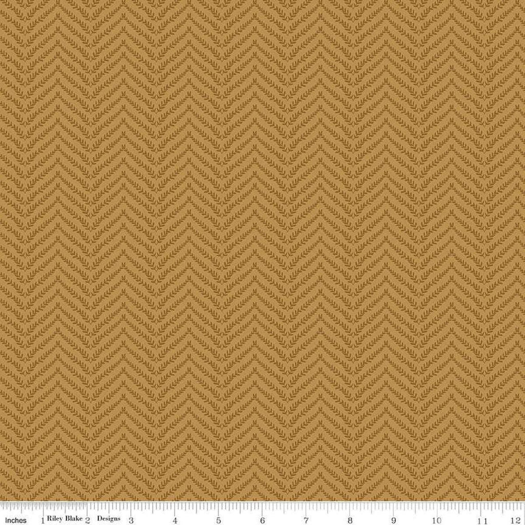 SALE Let's Wander Prairie Grass C16886 Golden - Riley Blake Designs - Stripes Zig Zag Leaf Leaves - Quilting Cotton Fabric