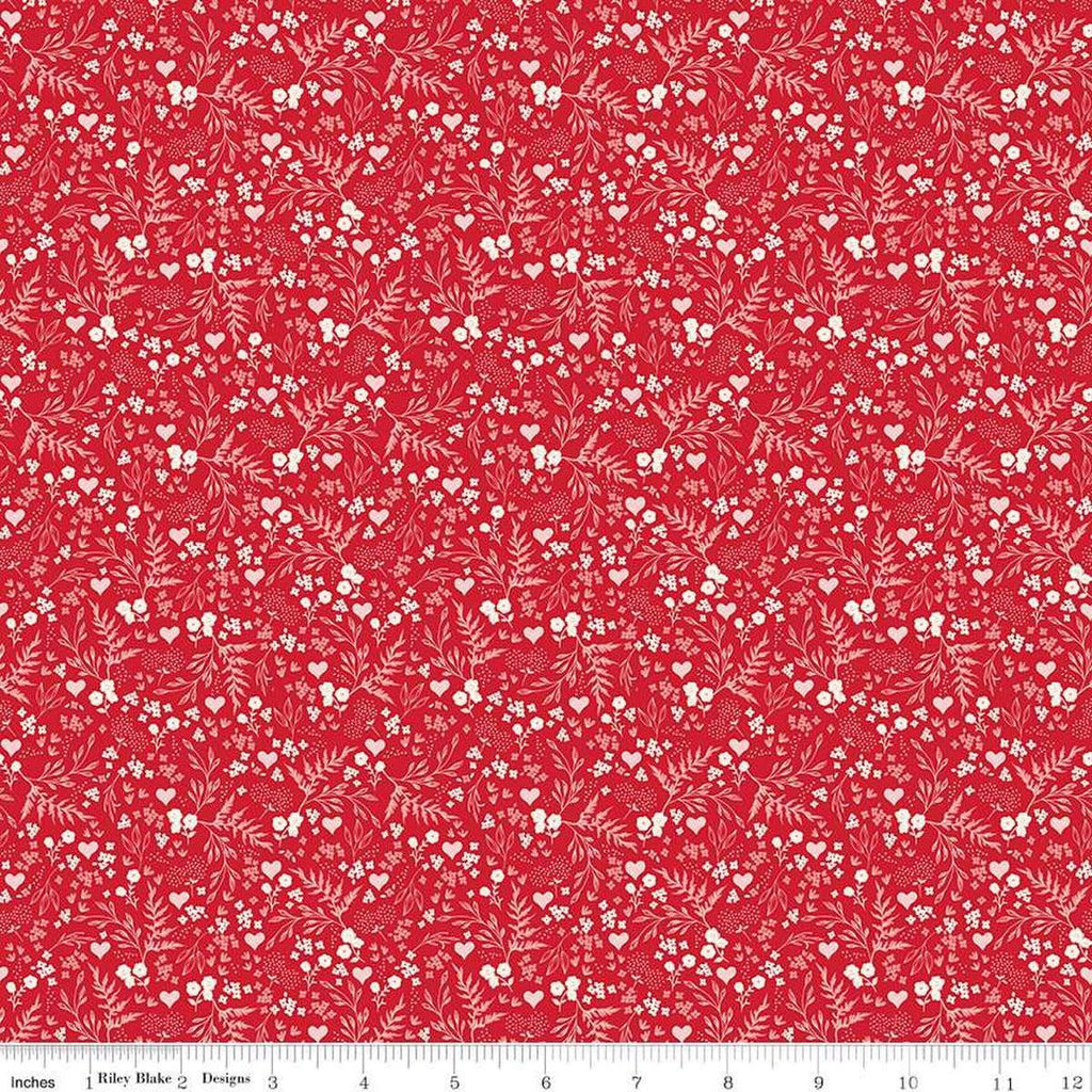 SALE Letters to Cupid Ditsy Floral C16984 Red - Riley Blake Designs - Flowers Blossoms Leaf Leaves - Quilting Cotton Fabric