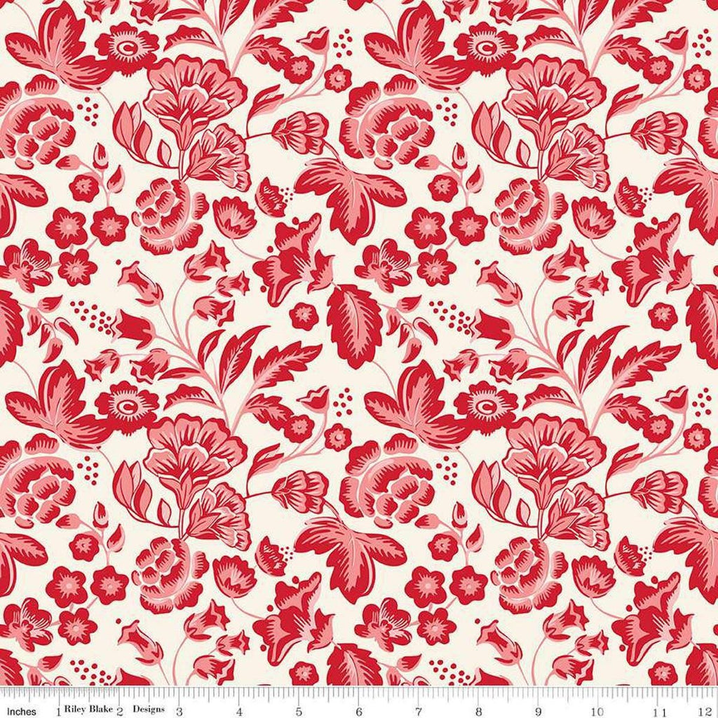 SALE Letters to Cupid Main C16980 Cream - Riley Blake Designs - Floral Flowers Blossoms Leaf Leaves - Quilting Cotton Fabric