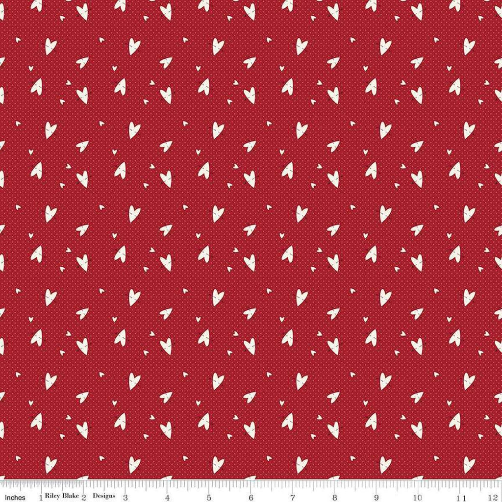 SALE Love You Always Hearts C16874 Red - Riley Blake Designs - Scattered Hearts PRINTED Pin Dots - Quilting Cotton Fabric