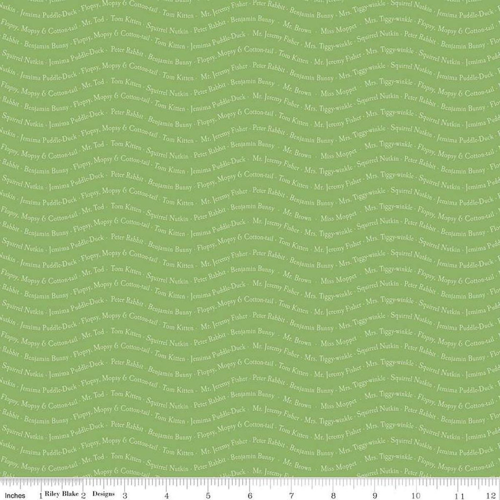 Peter Rabbit™ & Friends Text C15866 Green - Riley Blake Designs - Wavy Words Names - Quilting Cotton Fabric - Licensed Product