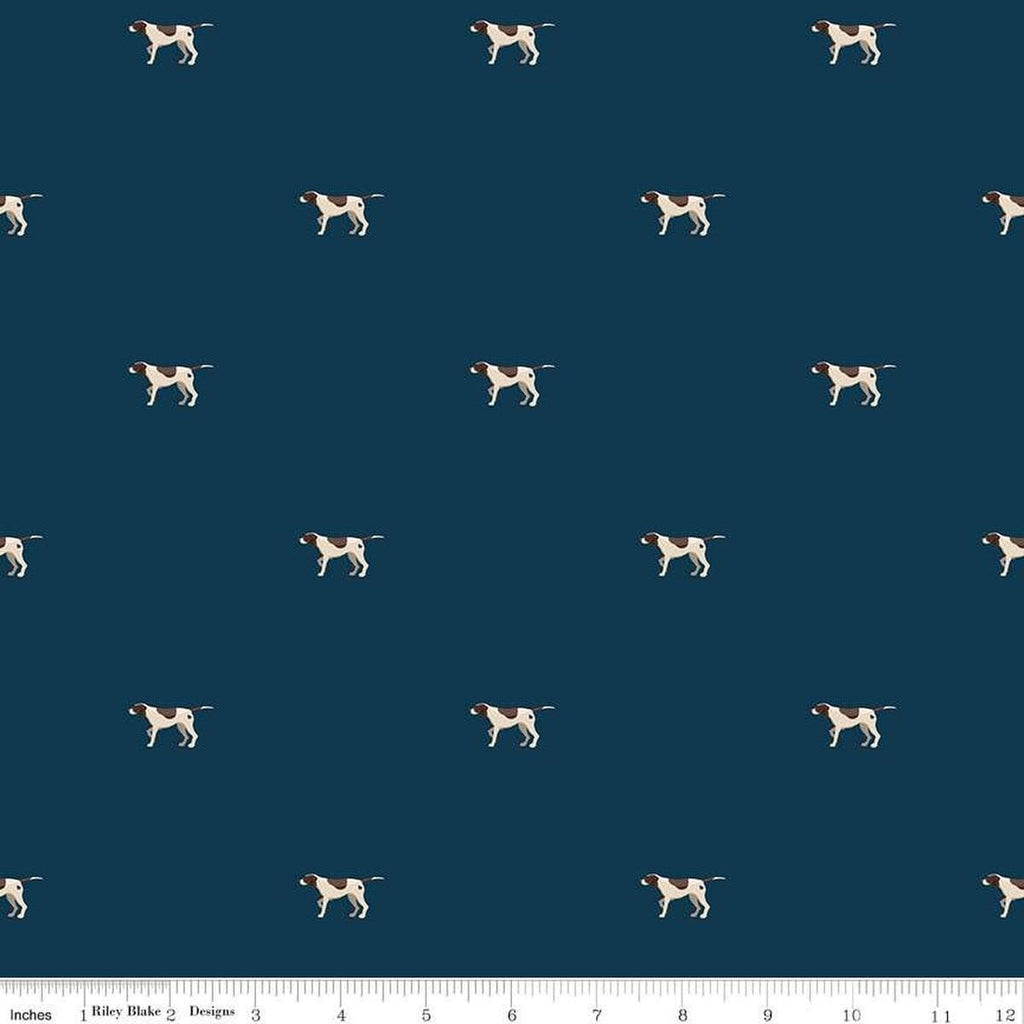 SALE Plaid-Venture Club Pointers C17044 Navy - Riley Blake Designs - Dogs Puppies Puppy Beagle - Quilting Cotton Fabric