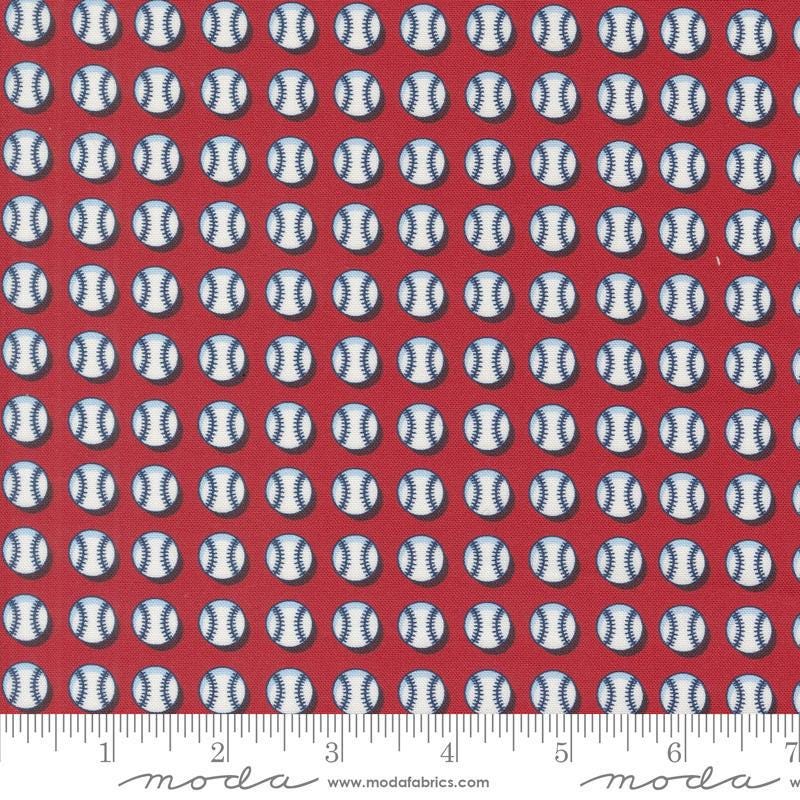 Play Ball Baseball 33814 Cardinal - Moda Fabrics - Sports Baseball Ball Stripe - Quilting Cotton Fabric