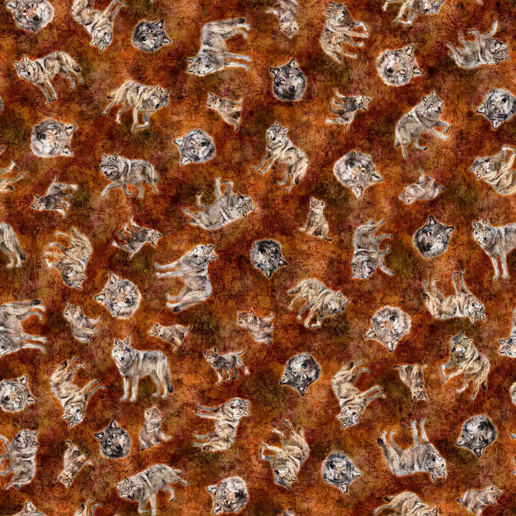 SALE Running With The Pack Tossed Wolves 31101 Brown A - by QT Fabrics - Wolf Outdoor Animals - Quilting Cotton Fabric