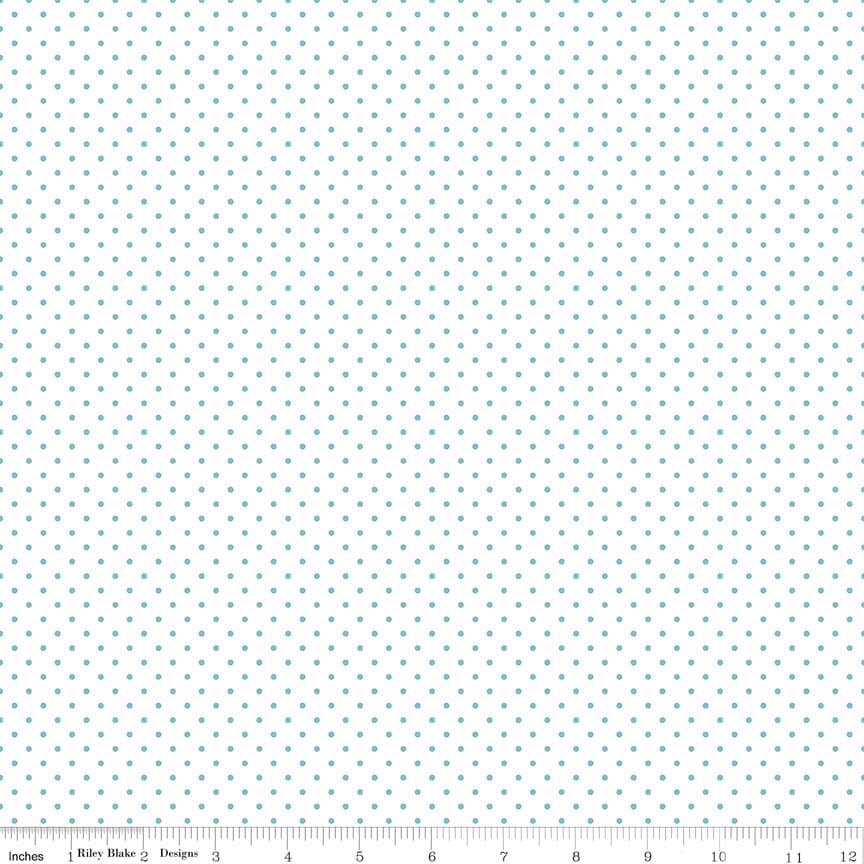 SALE Aqua Flat Swiss Dots on White by Riley Blake Designs - Polka Dot - Quilting Cotton Fabric