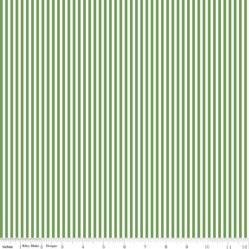 SALE Clover Green and White 1/8 Eighth Inch Stripe - Riley Blake Designs - Quilting Cotton Fabric