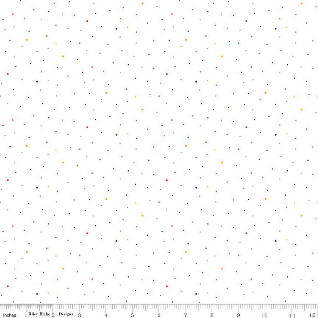 SALE Dapple Dot on White C645 Rainbow by Riley Blake Designs - Scattered Pin Dots Dotted - Quilting Cotton Fabric