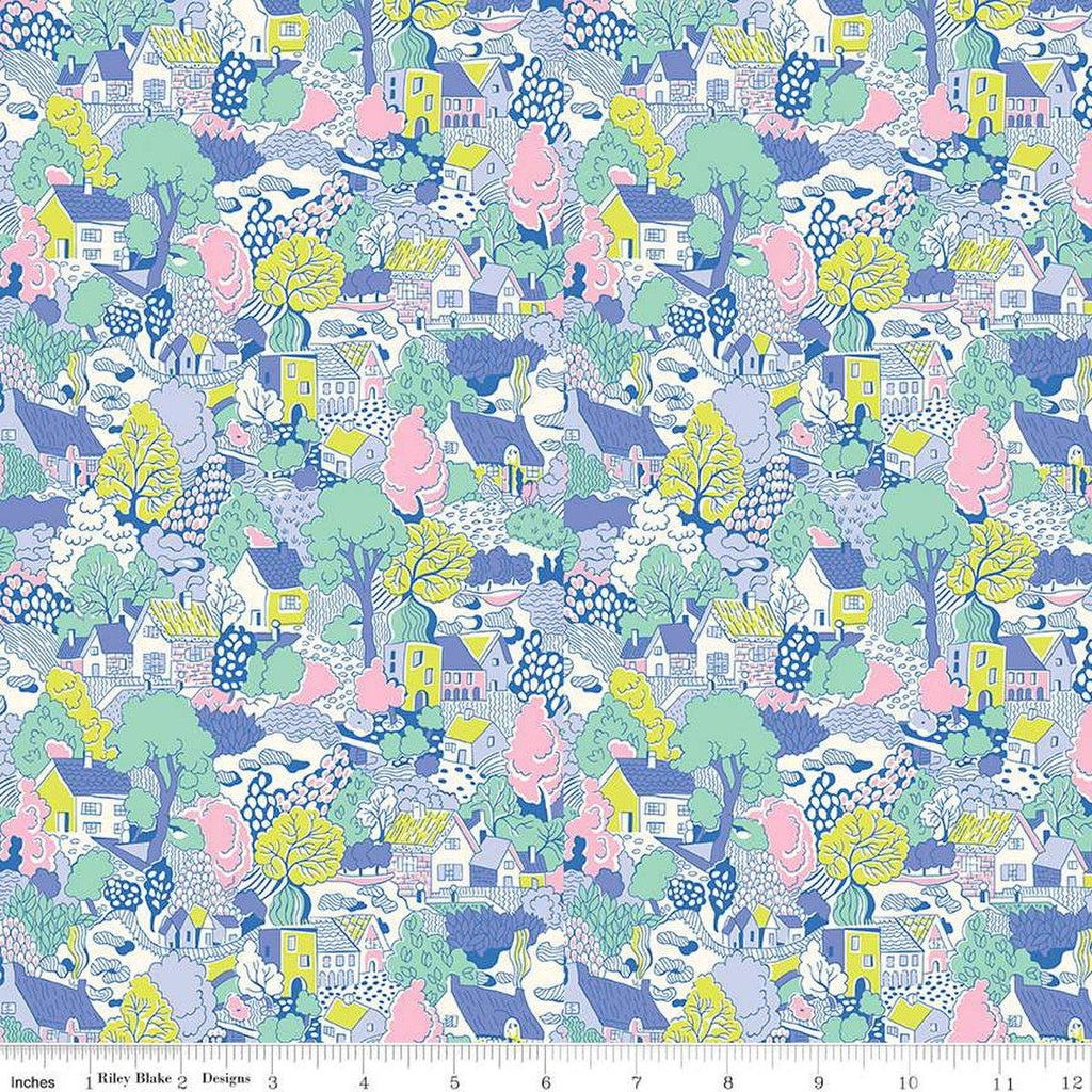 SALE London Parks Heath View B 01666857B - Riley Blake Designs - Town Village Houses Trees - Liberty Fabrics - Quilting Cotton Fabric