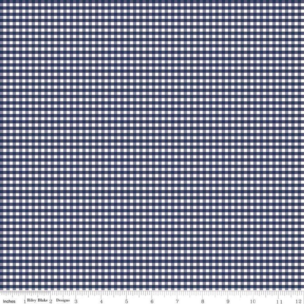 SALE Navy and White 1/8" Eighth Inch Small PRINTED Gingham - Riley Blake Designs - Blue Checker - Quilting Cotton Fabric