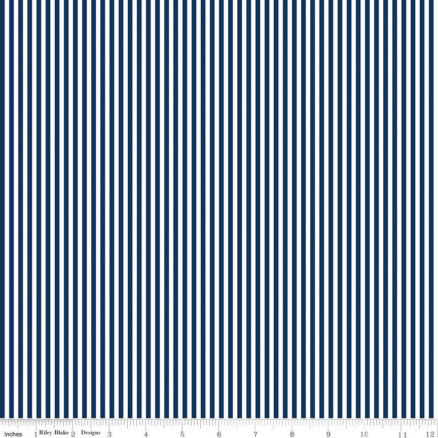SALE Navy Blue and White 1/8 Eighth Inch Stripe - Riley Blake Designs - Quilting Cotton Fabric