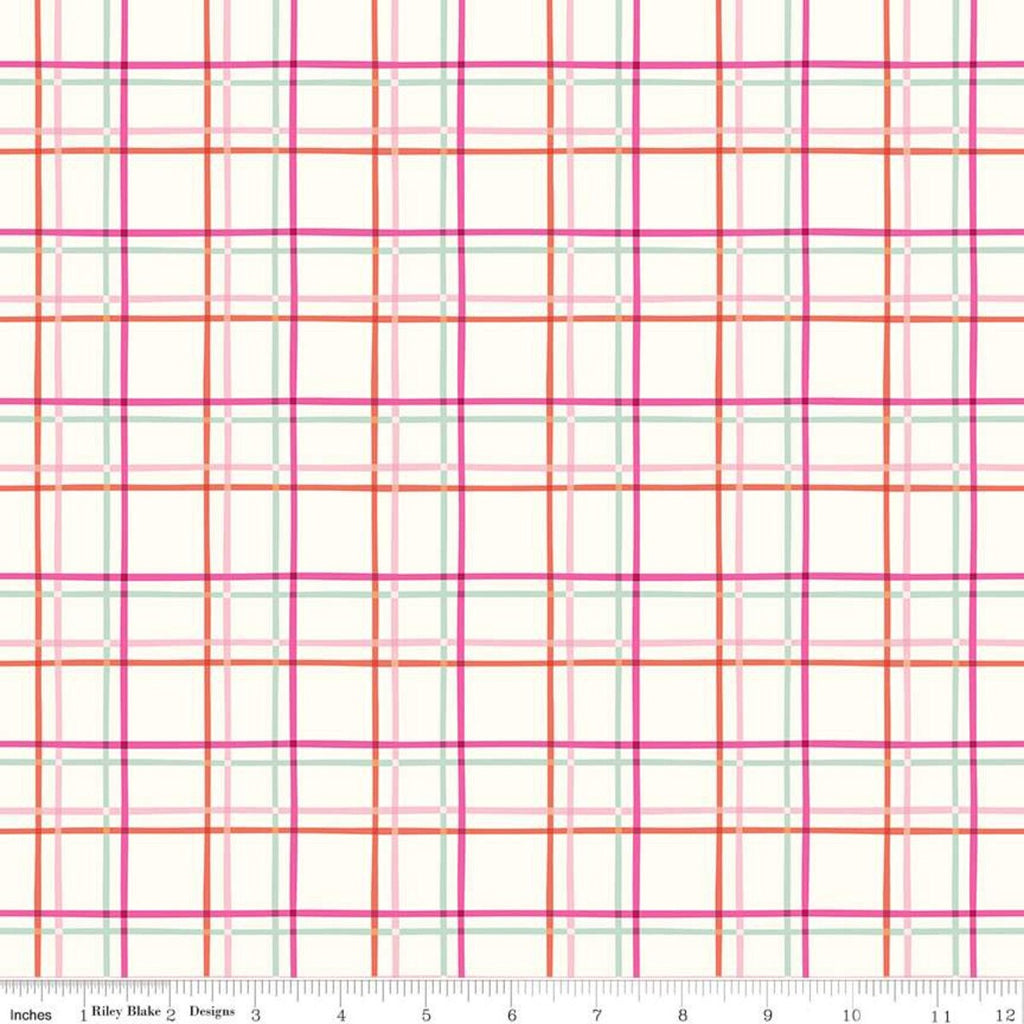 SALE New Dawn Plaid C9857 Cream - Riley Blake Designs - Pink Green Orange Cream - Quilting Cotton Fabric