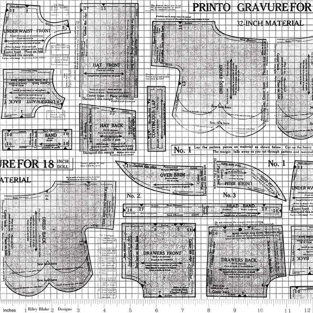CLEARANCE Sew Journal 18-Inch Doll Pattern C13890 Black - Riley Blake - Sewing Vintage Pattern - J. Wecker Frisch - Quilting Cotton Fabric