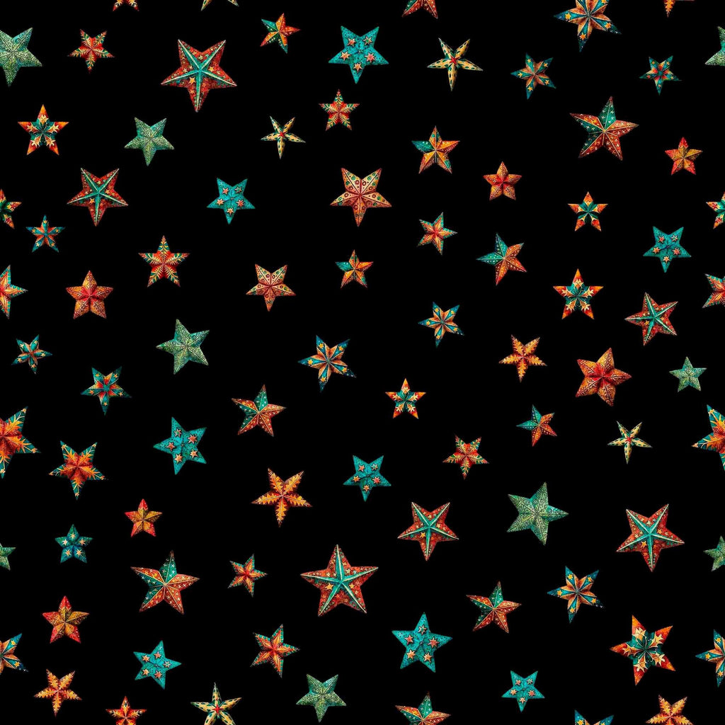 Santa's Workshop Stars Black by QT Fabrics 2600 31076 J