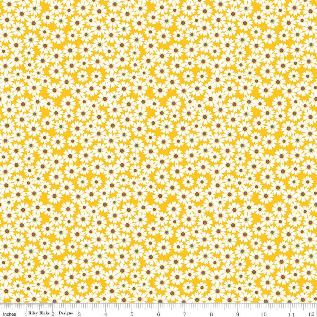 Singing in the Rain Daisy Fields Yellow - Riley Blake Designs - Floral White Flowers on Yellow - Quilting Cotton Fabric