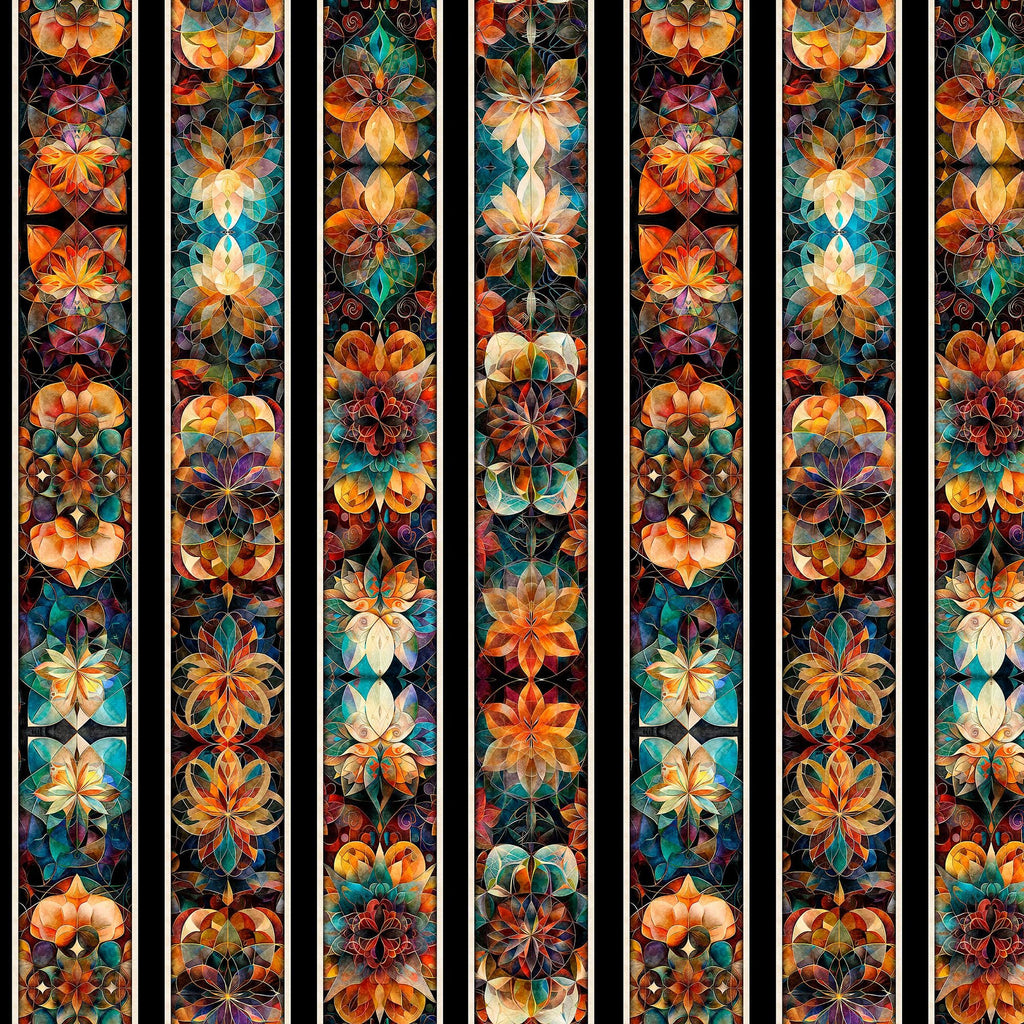 Solstice Kaleidoscope Border Stripe 31228 Black J - QT Fabrics - Geometric Abstract Stained Glass - Quilting Cotton Fabric